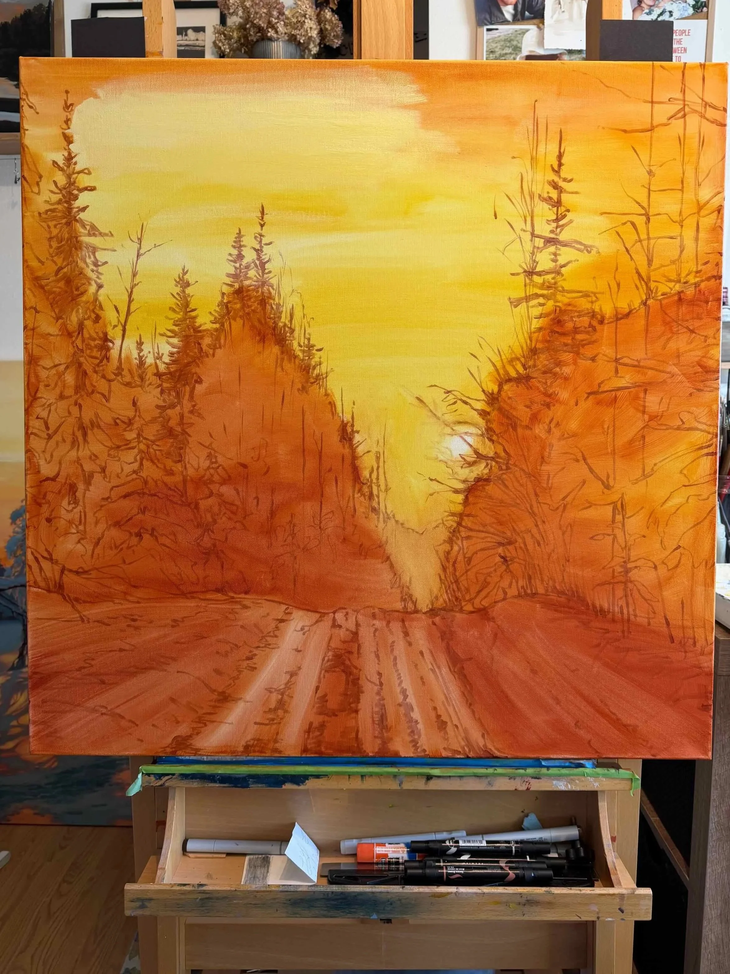 Underpainting of an oil piece by Lindsay Godfrey.