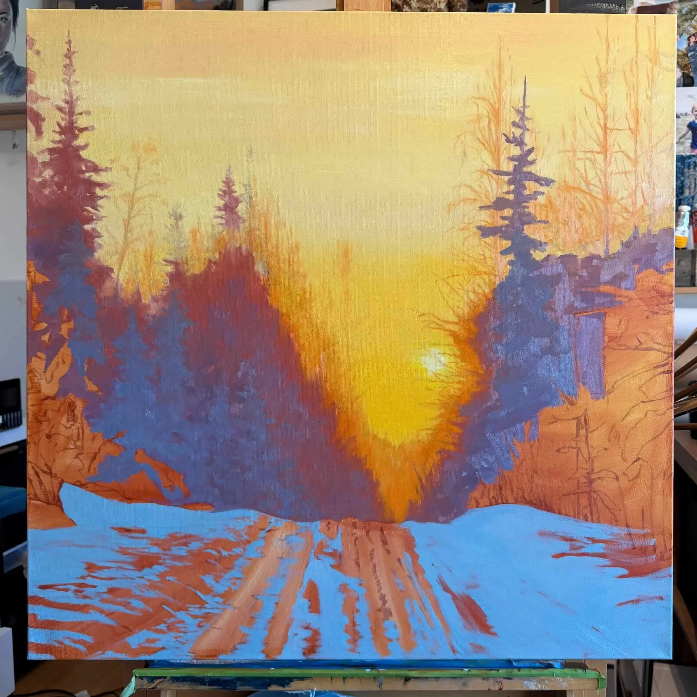 Some ideas naturally lean toward oil painting. If the landscape has a bold, eye-catching color palette or strong texture, oil is often the right fit. The body of the paint, the richness of pigment, and the ability to layer thick texture allow me to emphasize depth and intensity. Oil gives me room to push contrast and create dimensional surfaces.